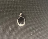 This is a vintage silver pendant with black onyx on enclosed in a silver case