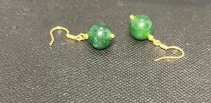 Vintage single-ball earrings in a rich spinach-green hue, designed for pierced ears. Each earring features a smooth, polished spherical form that highlights the depth and natural variation of the green tone. The minimalist silhouette reflects classic vintage styling, offering understated elegance and versatility. Suitable for both everyday wear and refined occasions, these earrings present a timeless accessory with subtle color and character.