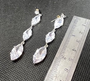 These are marquise-cut drop earrings, featuring crystals set in a silver-tone metal. They are designed for formal wear, such as weddings or proms, due to their elegant, sparkling appearance and elongated shape that catches the light.
