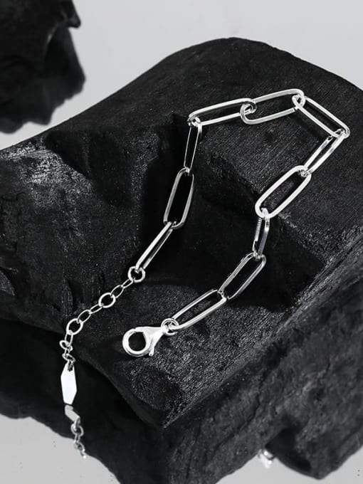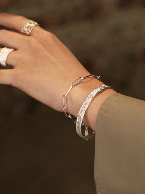 925 sterling silver, this hollow geometric chain link bracelet delivers a bold
