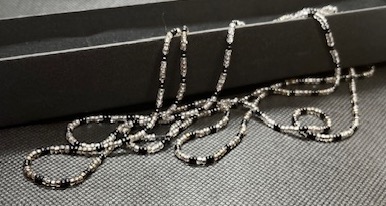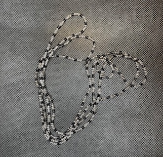 Vintage Dainty Seed Bead Necklace . Tiny Glass Seed Beads, Black and Clear